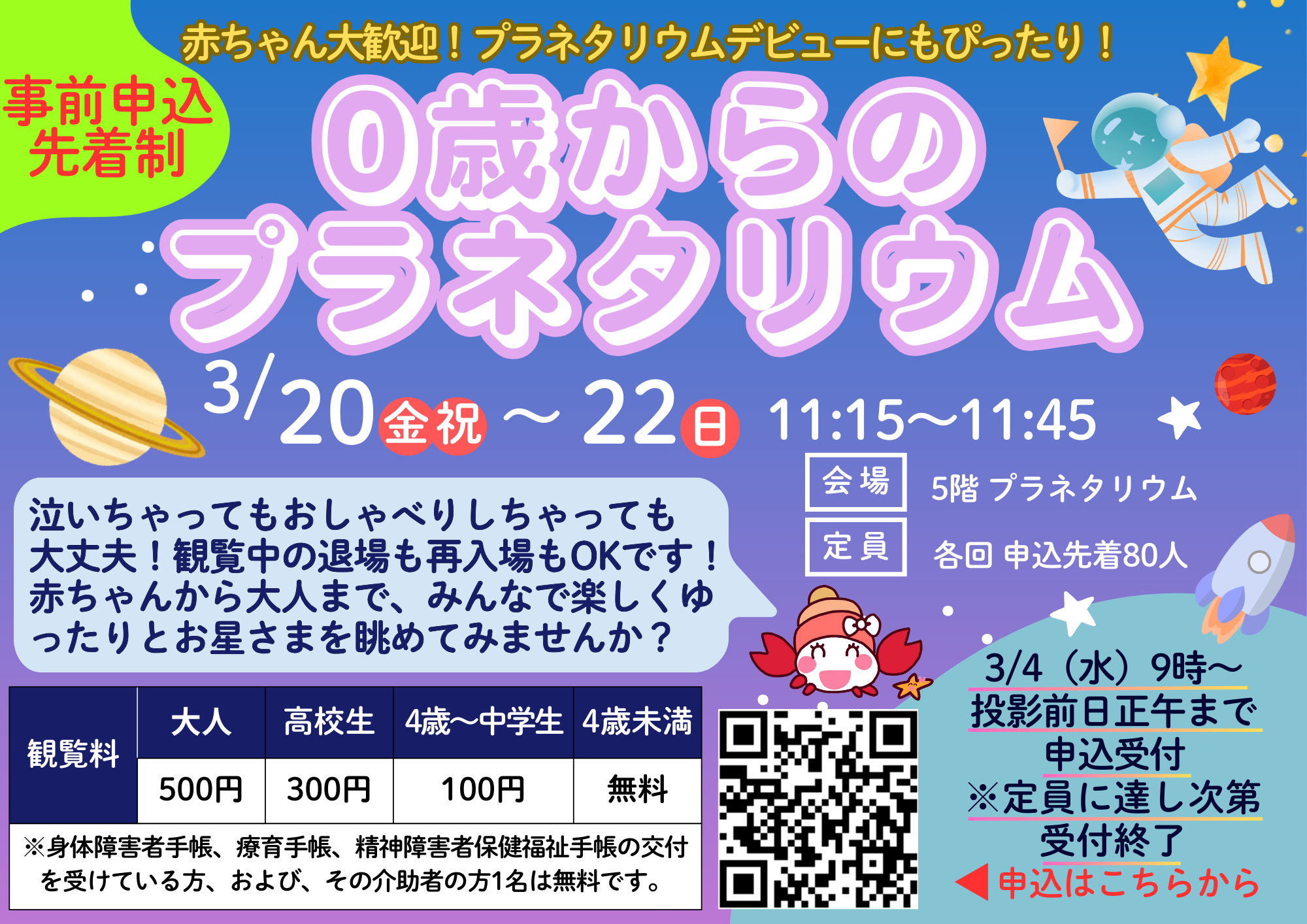 赤ちゃん大歓迎!プラネタリウムデビューにもぴったりです!